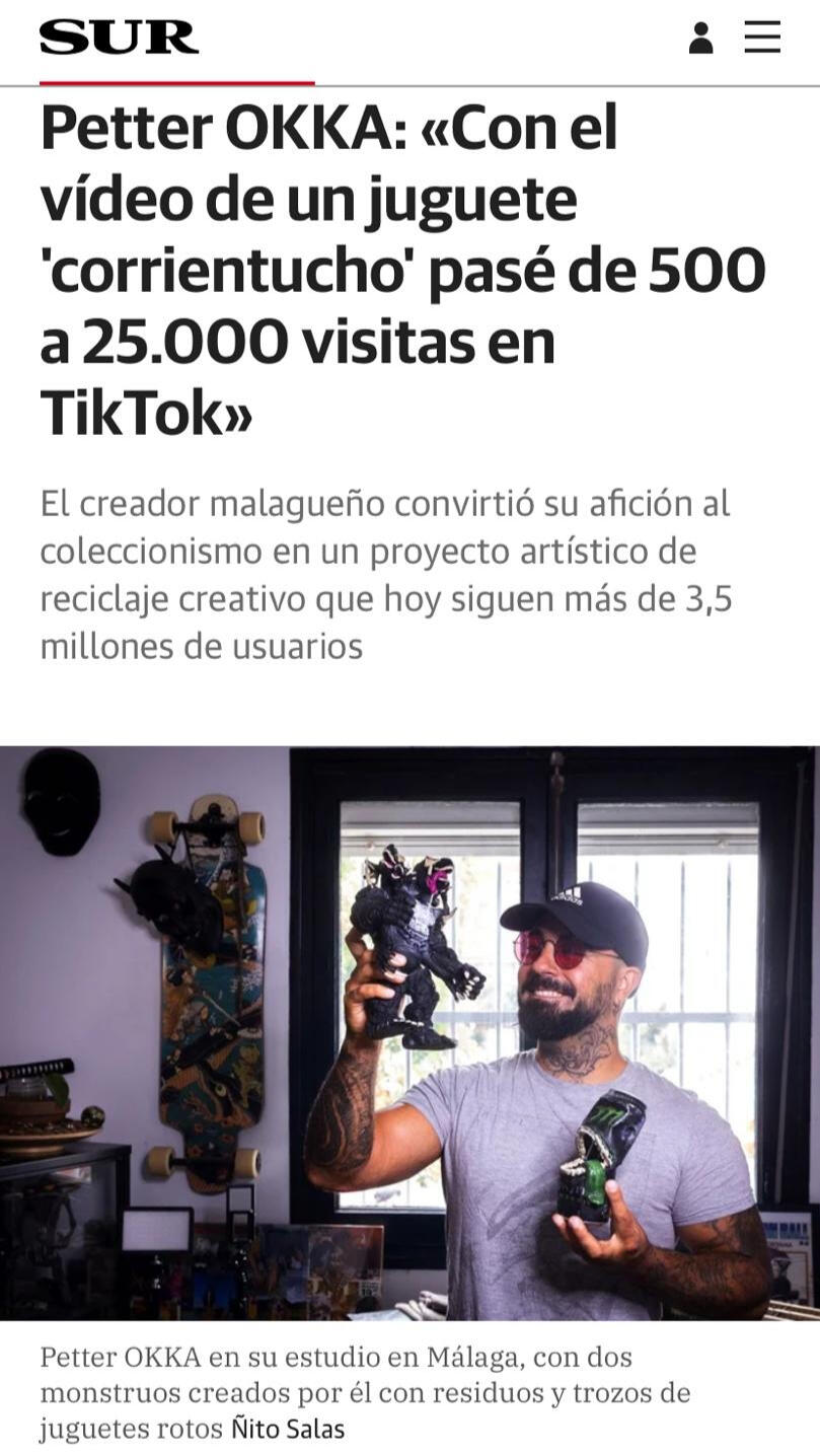 Hace unos días la periodista Regina Sotorrío, del Diario SUR, me hizo una entrevista donde tuve la oportunidad de hablar sobre mi trabajo como artista plástico y el universo creativo que gira alrededor de los juguetes rotos.Durante la conversación expliqué cómo, a través de piezas olvidadas o dañadas, se pueden generar nuevas formas de expresión artística, dando vida a juguetes monstruosos cargados de personalidad. Mi propuesta demuestra que lo que muchos consideran basura puede convertirse en un vehículo para la imaginación y el arte.En la entrevista también adelanté la nueva meta del proyecto: además de seguir compartiendo contenido en internet, quiero dar un salto al formato físico. La idea es organizar talleres, seminarios y masterclass donde mostraré en directo cómo transformar juguetes rotos en creaciones únicas. Será un espacio no solo para aprender técnicas, sino también para despertar la creatividad y descubrir posibilidades que van más allá del simple reciclaje.Este nuevo paso busca llevar el arte de los juguetes monstruosos a más personas, acercándolo tanto a quienes ya nos siguen en redes como a quienes quieren experimentar con sus propias manos el potencial de estos objetos olvidados.
