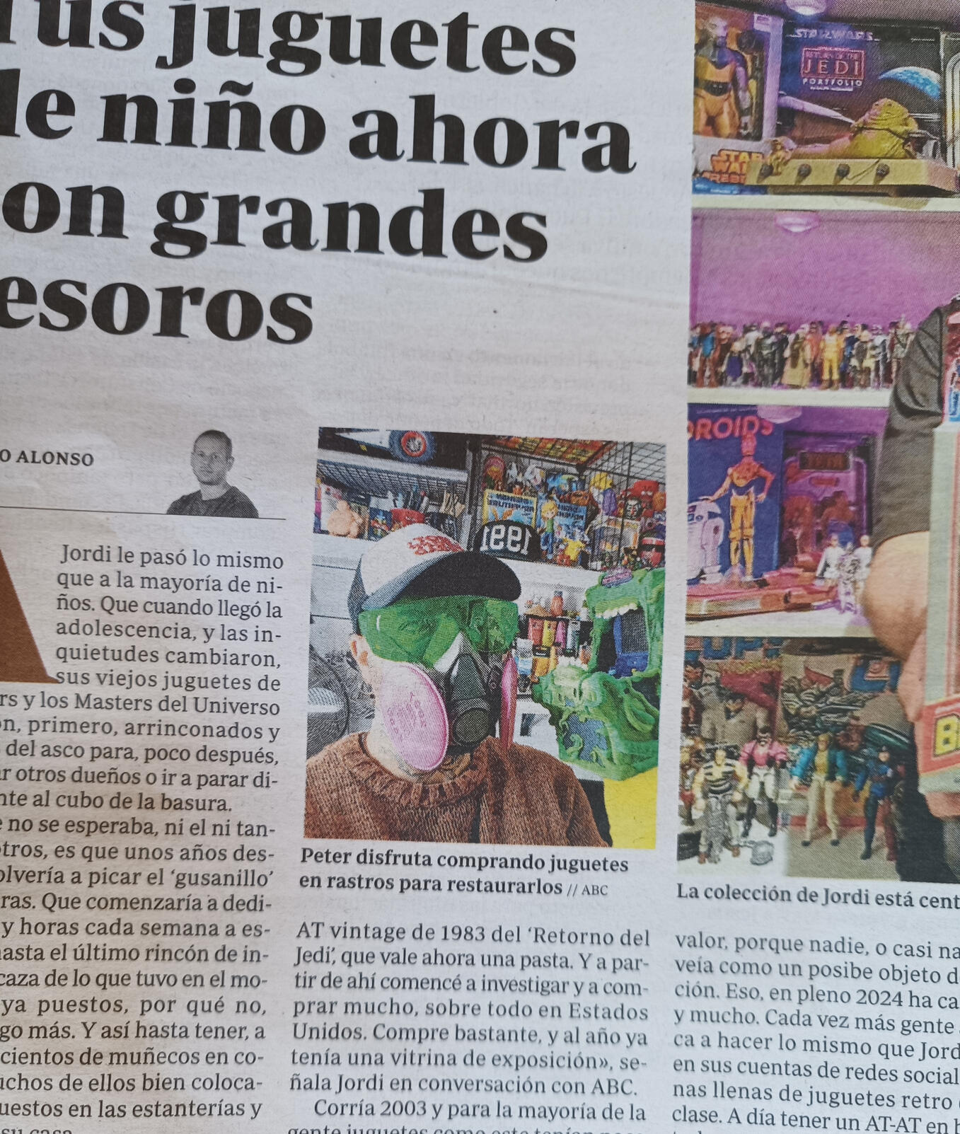 El periodista Rodrigo Alonso, del periódico ABC, me entrevistó recientemente en un reportaje dedicado al mundo del coleccionismo de juguetes en España. Fue un artículo especial, no solo por el tema, sino también por la época en que se publicó: Navidad, cuando los juguetes vuelven a estar presentes en cada hogar y memoria.En el reportaje participé junto a otros coleccionistas como Jordi de SkyToy, compartiendo nuestras experiencias dentro de esta afición que cada día atrae a más personas. Hablamos de nuestras piezas favoritas, de cómo las conseguimos, de las dificultades que a veces supone encontrarlas y del valor sentimental que guardan.El resultado fue un artículo muy bonito y lleno de nostalgia, que refleja cómo el coleccionismo de juguetes no es solo una búsqueda de objetos, sino también una manera de revivir recuerdos y mantener viva una parte de nuestra infancia.